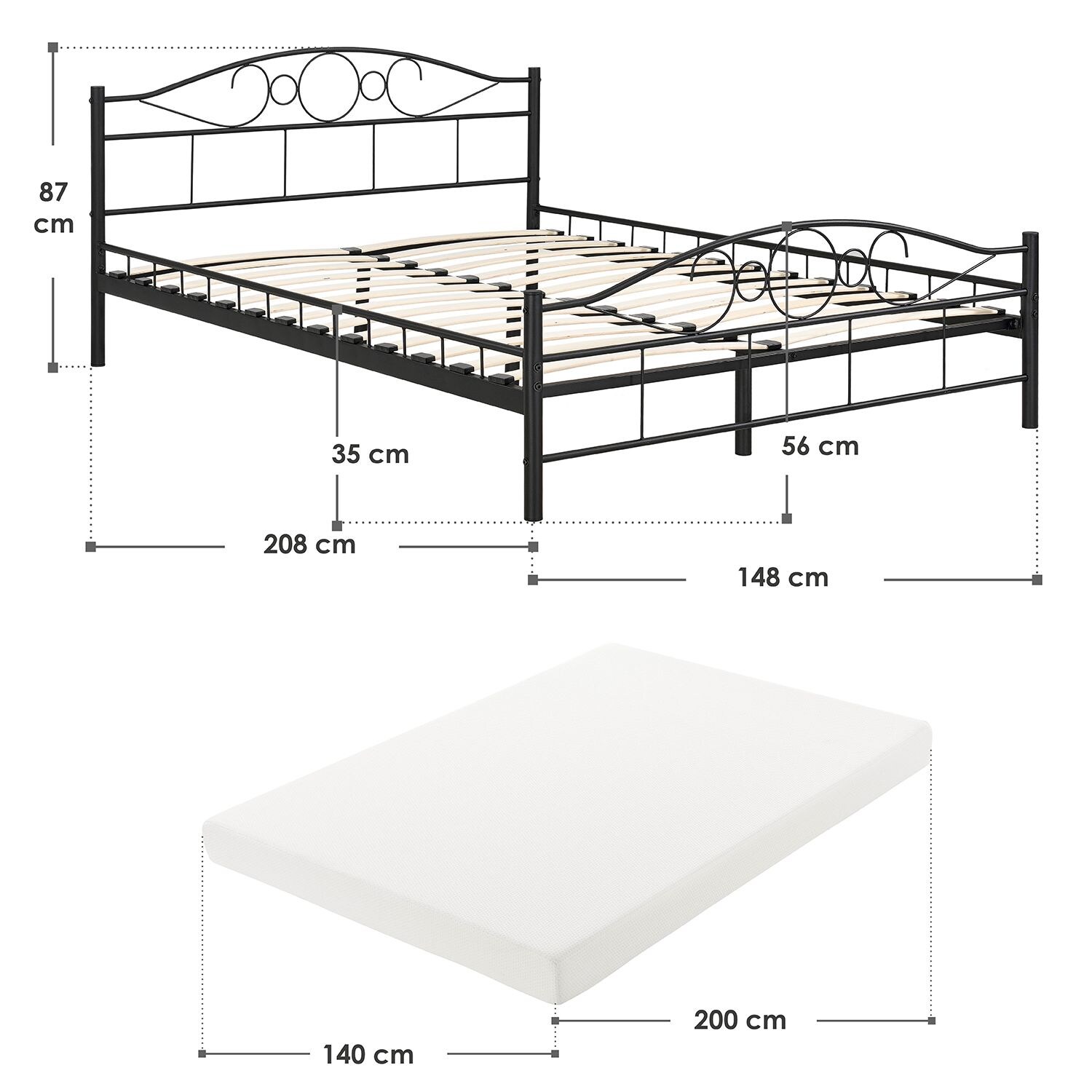 Juskys Led Polsterbett Murcia 140 X 200 Cm Komplett Set Mit Matratze Lattenrost Kopfteil Kunstleder Bett from cdn.manomano.com 90x200 bis 180x200 cm jetzt entdecken! Ein bett 140x200 cm ist ideal als geräumiges einzelbett und kann etwas kuschelig als doppelbett genutzt werden.bei uns gibt es betten 140x200 cm in jedem fall nur als hochwertige massivholzbetten.sei es mit einem flachen rahmen wie futonbetten, mit einem massiven rahmen als balkenbett oder geräumig als schubladenbett. Welches bettgestell für kleine schlafzimmer? In einem kleinen zimmer kann ein wuchtiges boxspringbett in den maßen 140 x 200 cm zu dominant wirken. Entdecke eine große auswahl an erstklassigen betten in 140x200 cm! Sie verbringen etwa ein drittel ihres lebens im bett. Einige unsere angebotenen modelle sind darüber hinaus nicht nur in standardlänge 200 cm, sondern ebenfalls in überlänge 210 cm oder 220 cm erhältlich Wähle dein neues einzelbett oder doppelbett für dein.
